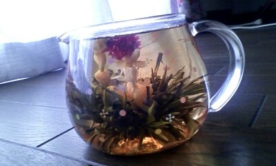 そして今日は、前に購入したけどずっとお蔵入りしていた、工芸茶を飲んでみました。忙しくて、なかなか手を付けられず~(そんなのばかり・・・)。
