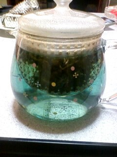 こんなに青いお茶を飲むって何だか不思議。でも、味も上品で、美味しかったです。
