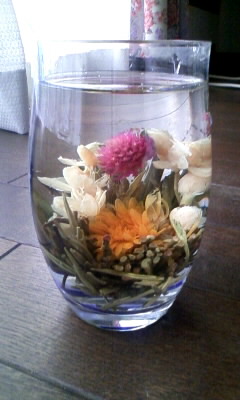 そして今日は、前に購入したけどずっとお蔵入りしていた、工芸茶を飲んでみました。忙しくて、なかなか手を付けられず~(そんなのばかり・・・)。